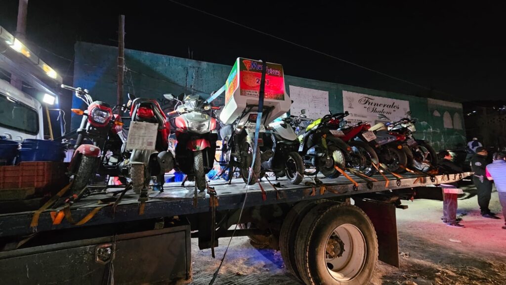 Ecatepec, Méx., a 30 de noviembre de 2025. Como resultado del Operativo “Motocicleta en Regla”, realizado por la policía municipal con respaldo de Marina, con la intención de asegurar el cumplimiento del nuevo Reglamento de Tránsito del Estado de México, evitar accidentes y detectar unidades robadas, fueron remitidas al corralón 27 unidades, además de asegurar un paquete de narcóticos.