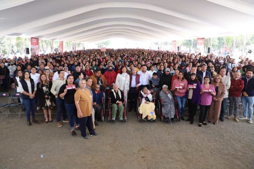 Tecámac fue sede este miércoles de la entrega de 2 mil 800 tarjetas del programa Mujeres con Bienestar, así como canastas alimentarias y aparatos funcionales, la alcaldesa Rosi Wong Romero, destacó que este apoyo económico esta orientado a mejorar sus condiciones de vida y fortalecer su autonomía.