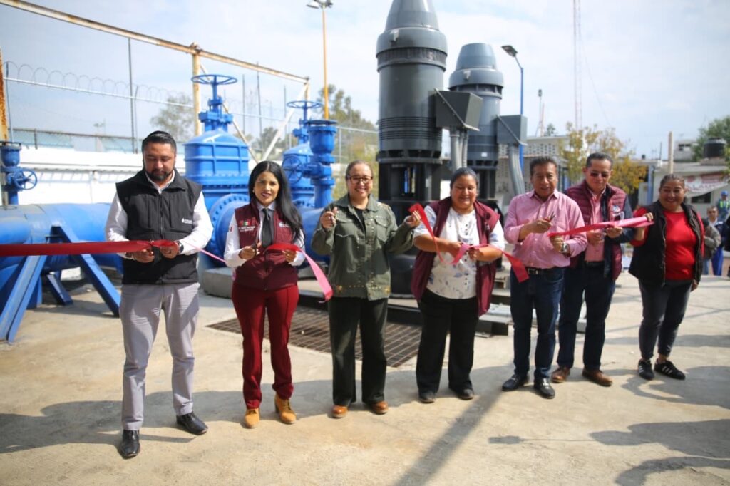 Ecatepec, Méx., a 17 de diciembre de 2025. La rehabilitación del pozo de agua potable “Benito Juárez” y los cárcamos “Las Américas 1”, “Pichardo Pagaza” y “La Piedad San Agustín” beneficia a más de 120 mil habitantes de Ecatepec, 30 mil de ellos con suministro de agua por la red en la colonia Ejidos de San Cristóbal, quienes durante siete años carecieron de líquido por la tubería.