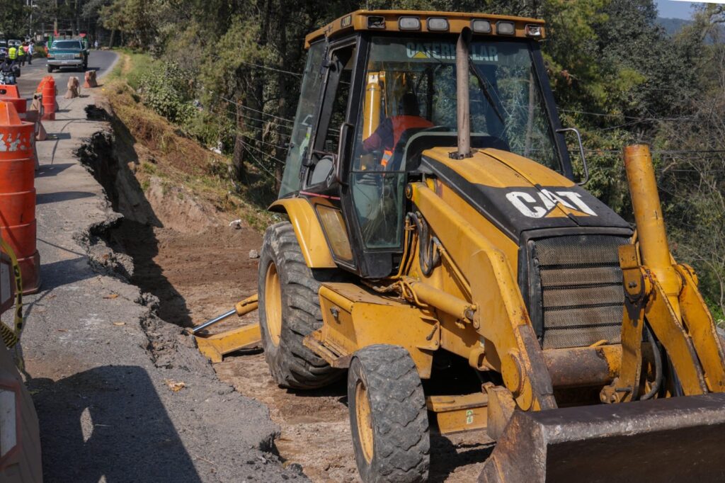 Durante su visita a Cahuacán, la Presidenta Municipal atestiguó los trabajos que se realizan a la altura del kilómetro 18 de la carretera Tlalnepantla-Villa del Carbón, donde el pasado mes de agosto ocurrió un deslave.