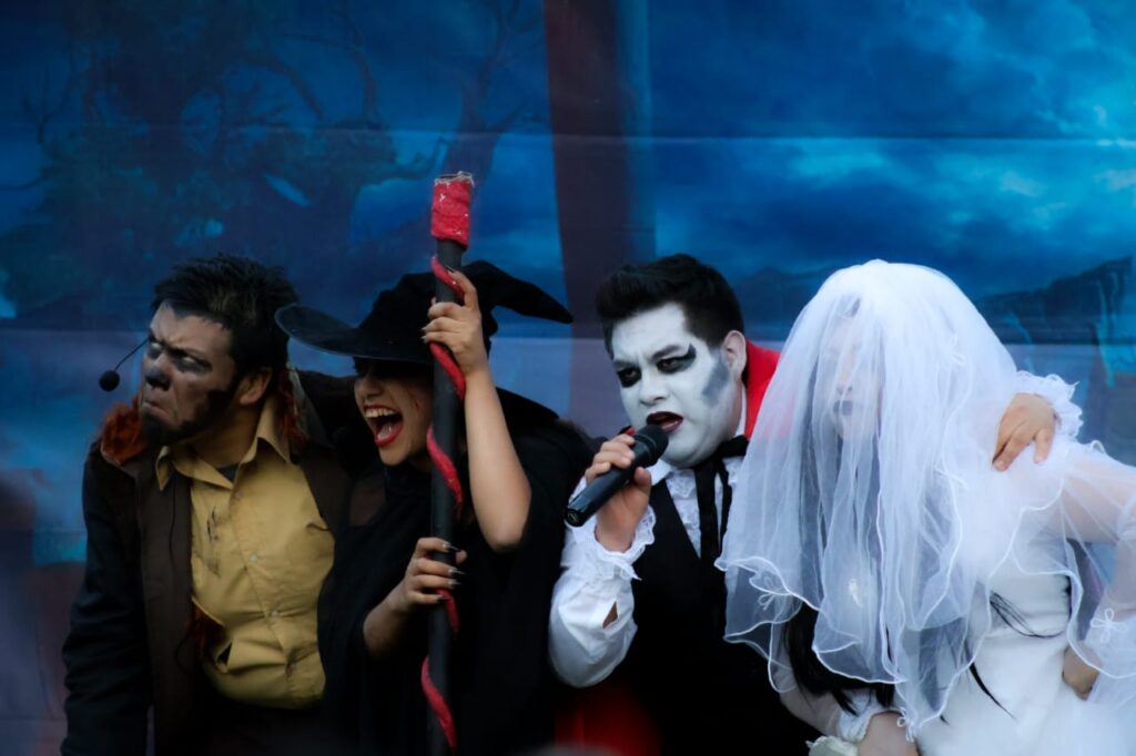 Además, la Presidenta Municipal participó en el “recorrido de leyendas”, por el casco de la exhacienda de la Encarnación, caminando por un sendero en el que aparecieron alumnos universitarios disfrazados de fantasmas de la época virreinal que en vida habitaron ese lugar y que en pleno siglo XXI, continúan como almas en pena, que sufren eternamente las causas de su muerte.